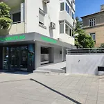 The 52 m^2 Topaz Beachfront Apartment is situated in the Varna City-Centre district, 20 minutes' drive from Varna airport. Staying in the apartment, nestled just 5 minutes' walk from Roman Thermae, guests can relax on a terrace.